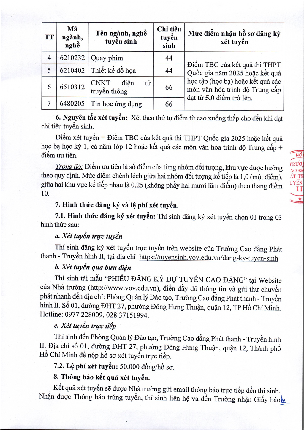 - 07/01/2026THÔNG TIN TUYỂN SINH 2026 CỦA TRƯỜNG CĐ PHÁT THANH - TRUYỀN HÌNH II (VOV COLLEGE)