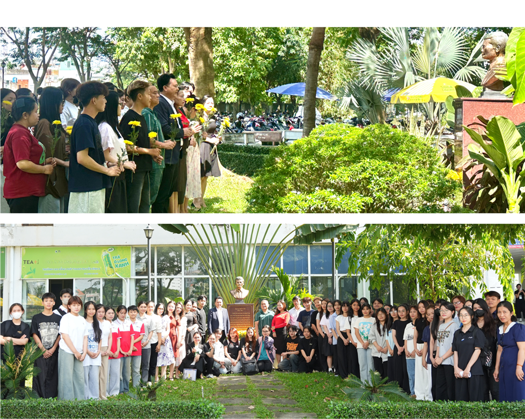 Ban Giám hiệu cùng cán bộ, giảng viên và sinh viên Nhà trường dâng hoa tưởng niệm Chủ tịch Hồ Chí Minh và nhà báo Trần Lâm